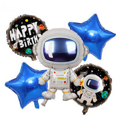 Astronaut Theme Happy Birthday Foil Balloon Set For Space Theme Birthday Party pack of 5