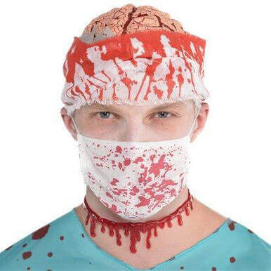 Choose a Halloween costume that’s seriously sinister this year! This fabric mask looks just like the kind worn by surgeons – except it’s covered in splatters of bright red blood.