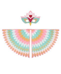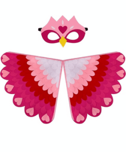 - What the Bird wings and face masks made from:Those fabric bird wings capes and masks are made from non toxic and odorless environmentally friendly materials with colorful prints.Easy to wear and easy to put off with elastic band.