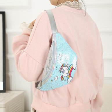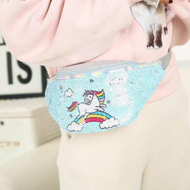 Cartoon Kid Waist Bag Cute Fanny Pack For Baby Girl Unicorn-Blue