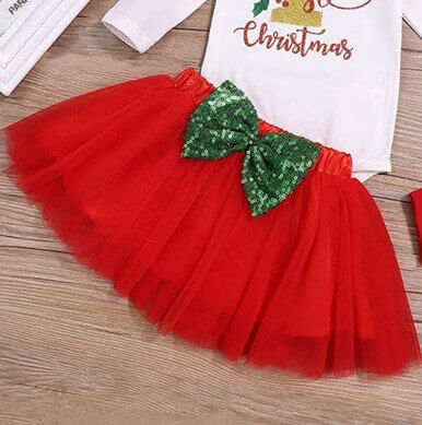 Christmas Baby Outfit My First Christmas Baby Girl Romper Top and Tutu Skirt Leg Warmers with Headband 4PC Clothes Set