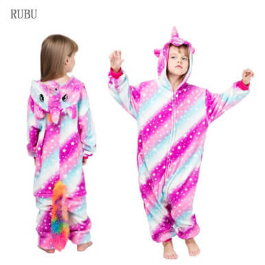 Girls One-Piece Kids Gold Horn Unicorn Pajama