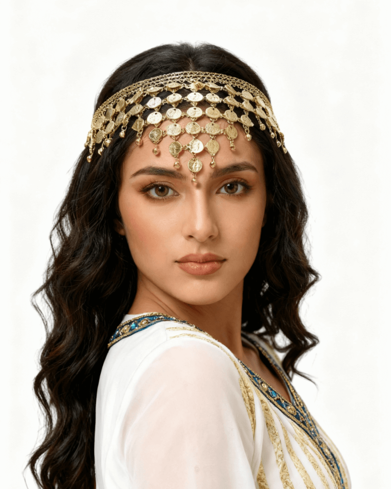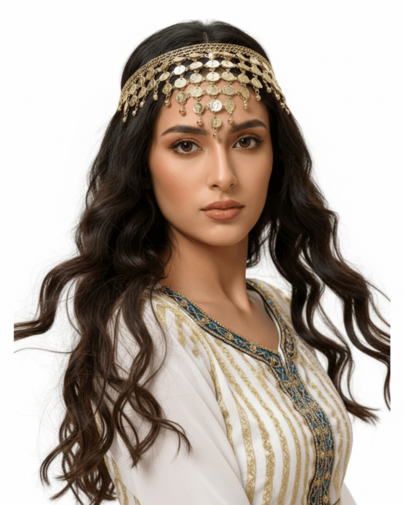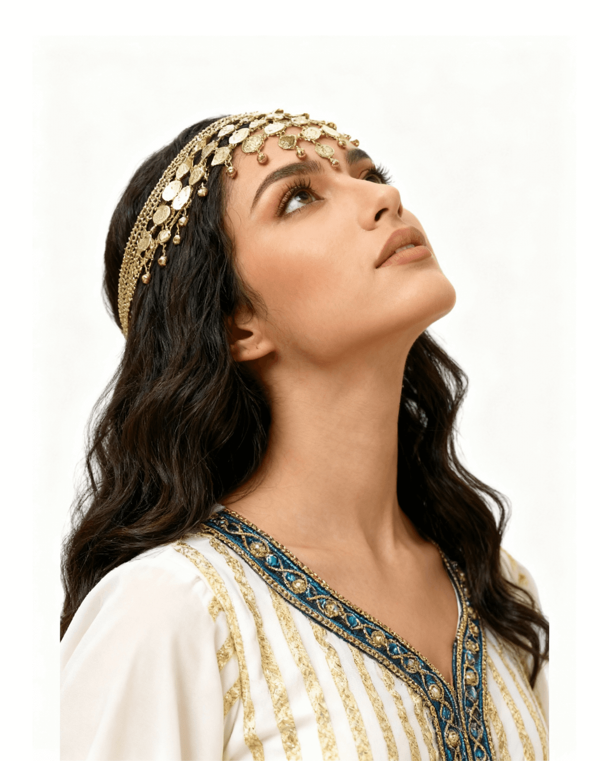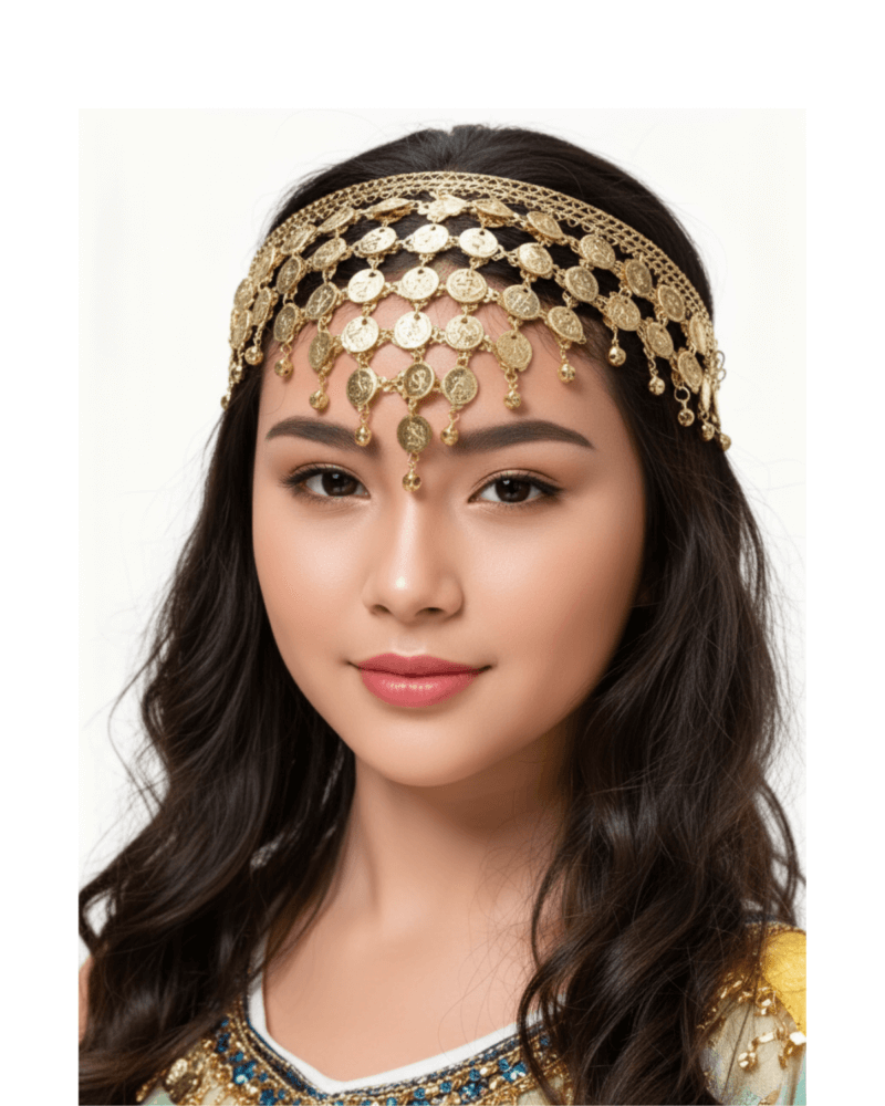 Whether you’re styling a belly dance costume, ancient queen look, festival outfit, or themed party attire, this headpiece adds the perfect finishing touch with minimal effort.