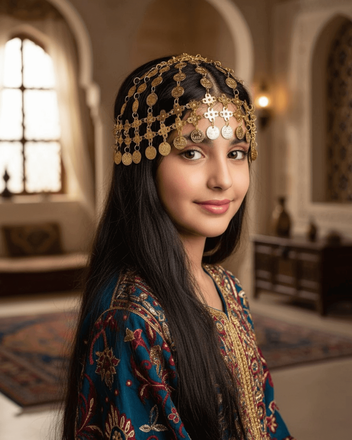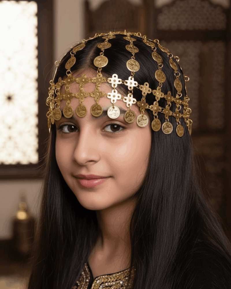 Golden Coin Hair Headband girls Hoop Headpiece Antique Traditional National day celebration