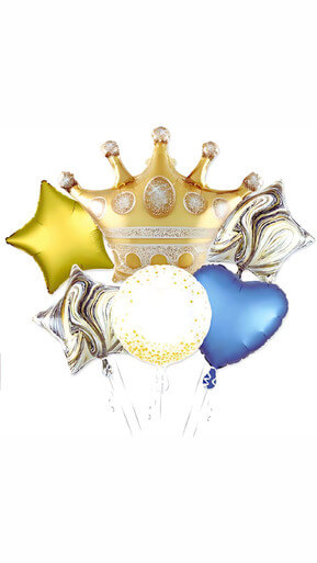 Golden Crown Balloon With Star gold and Black and blue heart