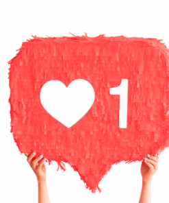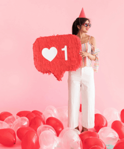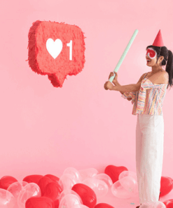 One of our favorite things about Instagram Stories are the stickers! We’ve been overusing the ‘like’ sticker for a few weeks and decided to make it come to life as a giant piñata! This is a great idea for a birthday party. Print out some “comments” from friends and add them inside with candy – you could even print out and add your favorite Instagram photos!