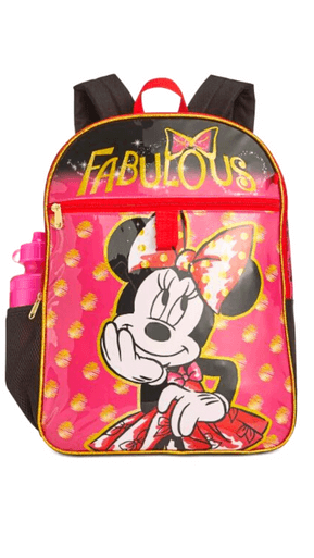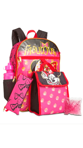 She’ll arrive at school in style and with everything she needs right at her fingertips thanks to this handy five-piece set that includes a backpack with adjustable straps, insulated lunch bag with an ice pack, a pencil case and a water bottle–all with FABULOUS Minnie Mouse graphics.
