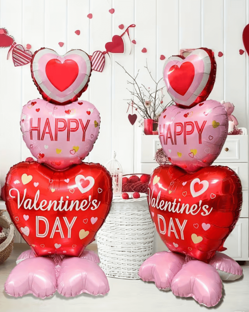 Make your celebration unforgettable with this Standing Valentine’s Day Aluminum Foil Balloon, designed to stand on its own with a charming pink heart base and a romantic red & pink heart color scheme.